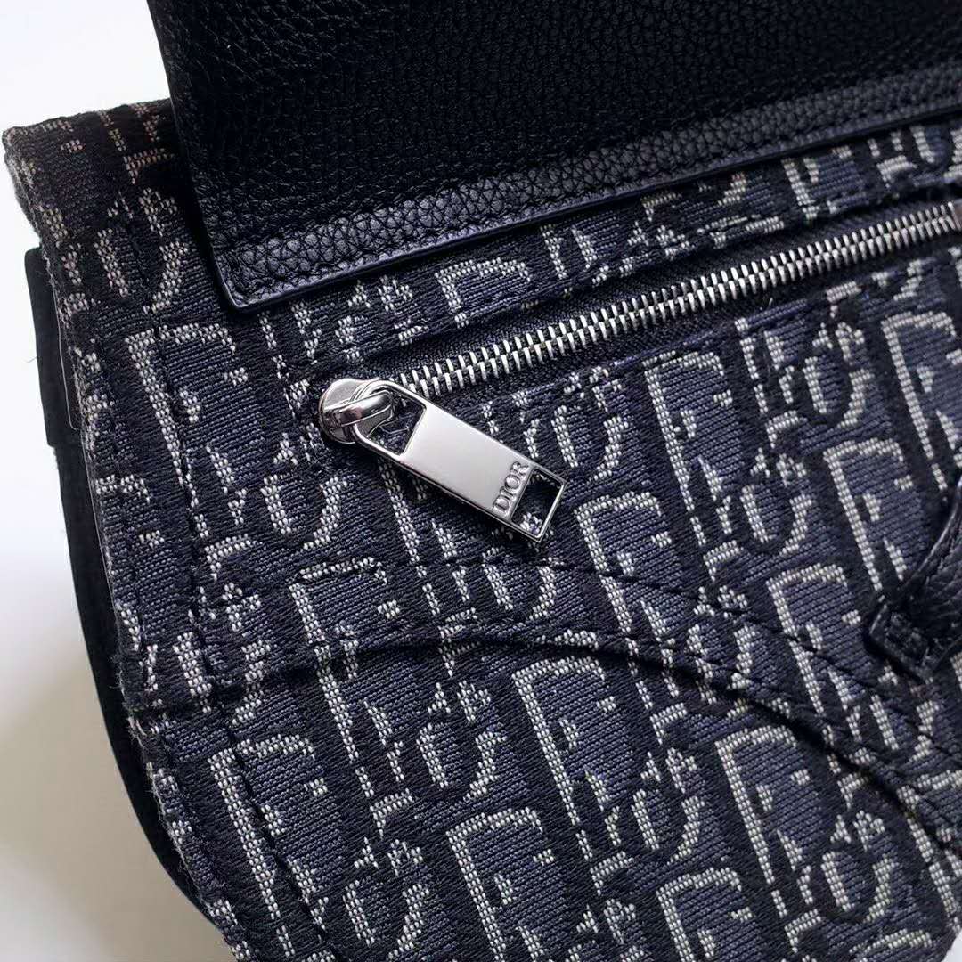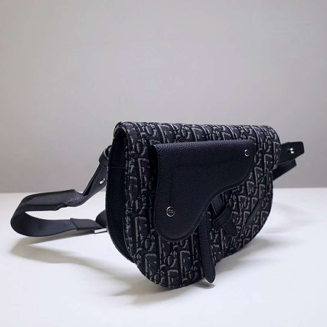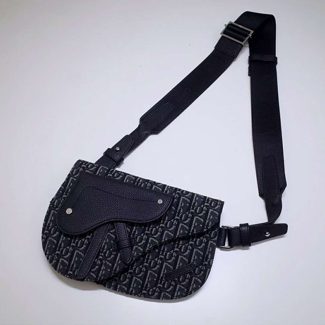 Designed to hold all the essentials like keys, phone and a wallet, the gray Dior Oblique jacquard silhouette is embellished with the iconic Saddle lines.