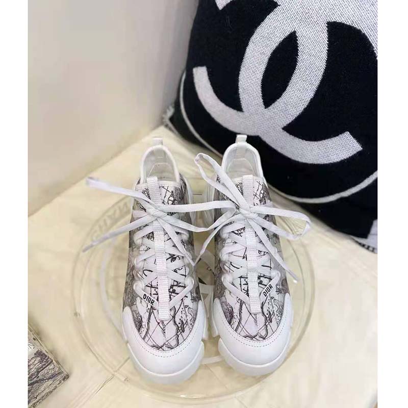 The D-Connect sneaker is a hallmark House design and is offered with a Dior Around the World motif, inspired by adventure.