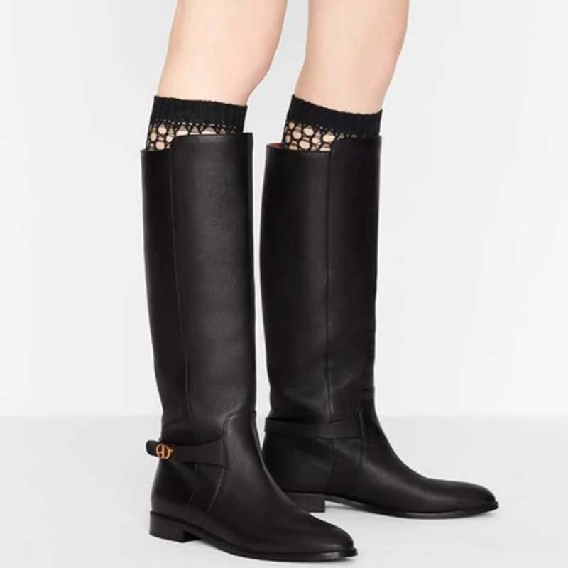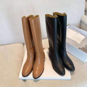 Made with soft black calfskin, the timeless riding boot makes for a relaxed and elegant style.