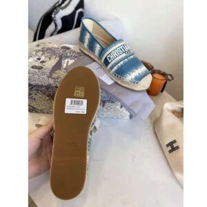 Dior Women Dior Granville Espadrille Deep Ocean Blue D-Stripes Embroidered Cotton