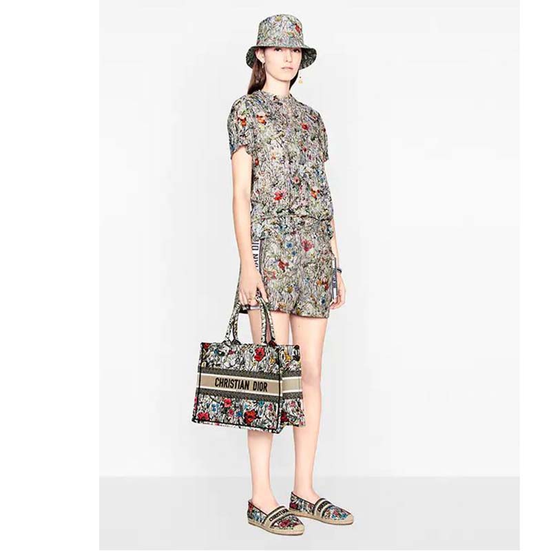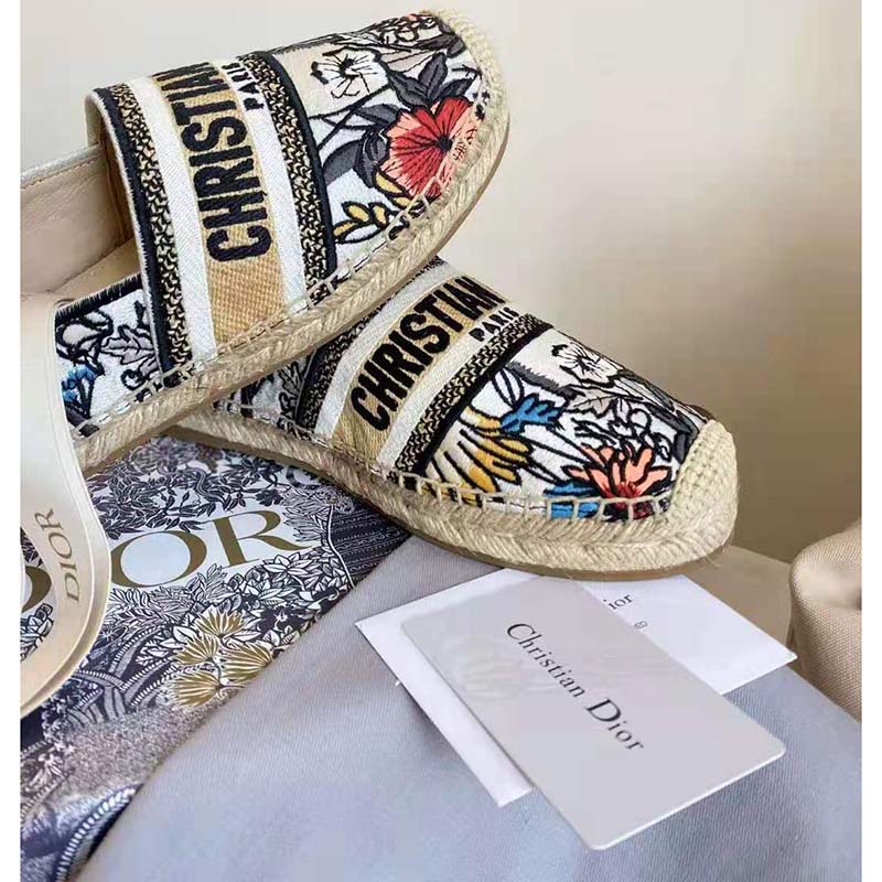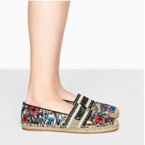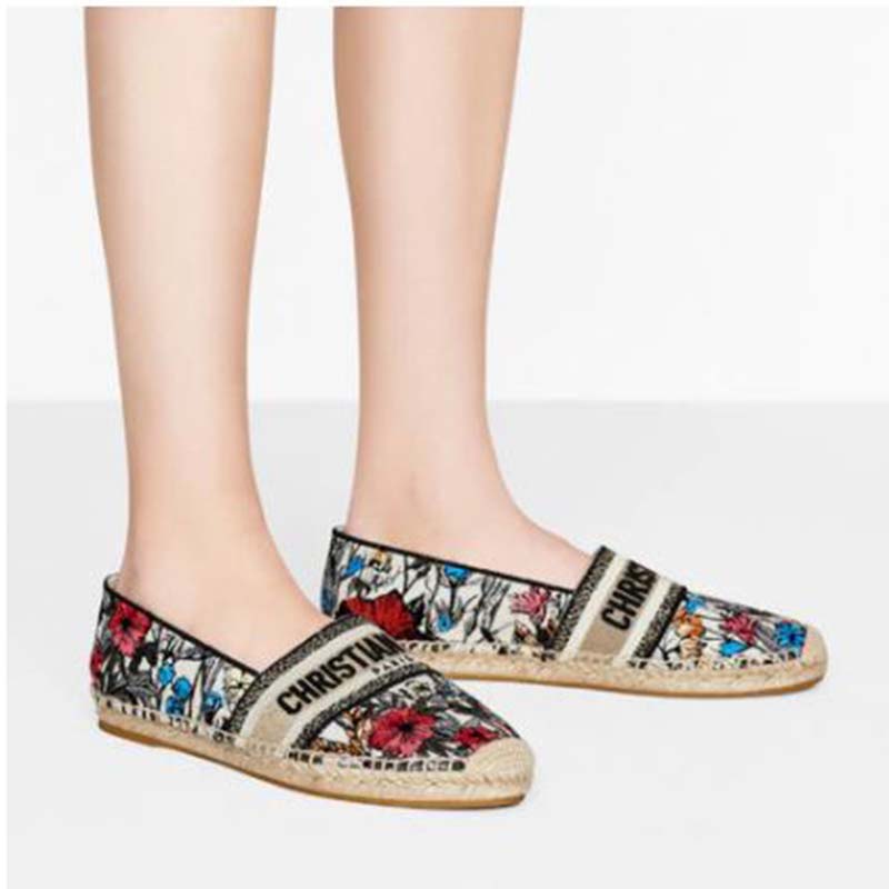 The Dior Granville espadrille is distinguished by the Mille Fleurs motif, representing the bucolic landscapes of Puglia that are the flagship theme of the collection.
