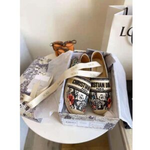 Crafted in multicolor embroidered cotton, the style is enhanced by emblematic House details, like the ‘Christian Dior’ signature on the upper.