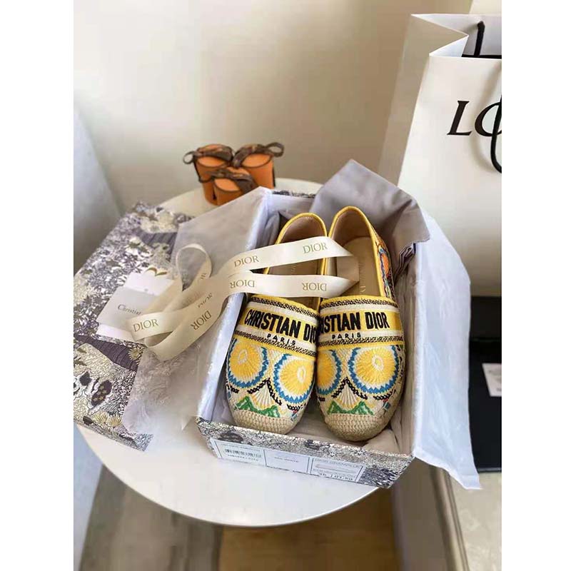 Crafted in multicolor embroidered cotton, the style is enhanced by emblematic House details, like the ‘Christian Dior’ signature on the upper.