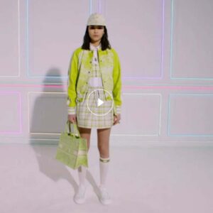 A prime example of House craftsmanship, the white technical fabric design, covered in mesh, offers a play on textures and highlights the lime Toile de Jouy motif.