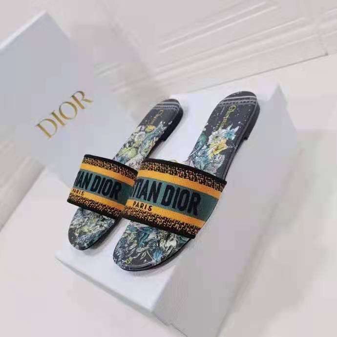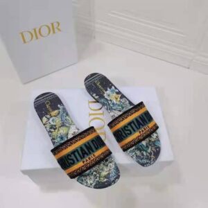 The Dway slide is an emblematic and timeless style featuring the multicolor Dior Zodiac motif, a reminder of Mr. Dior’s fascination with the divinatory arts.