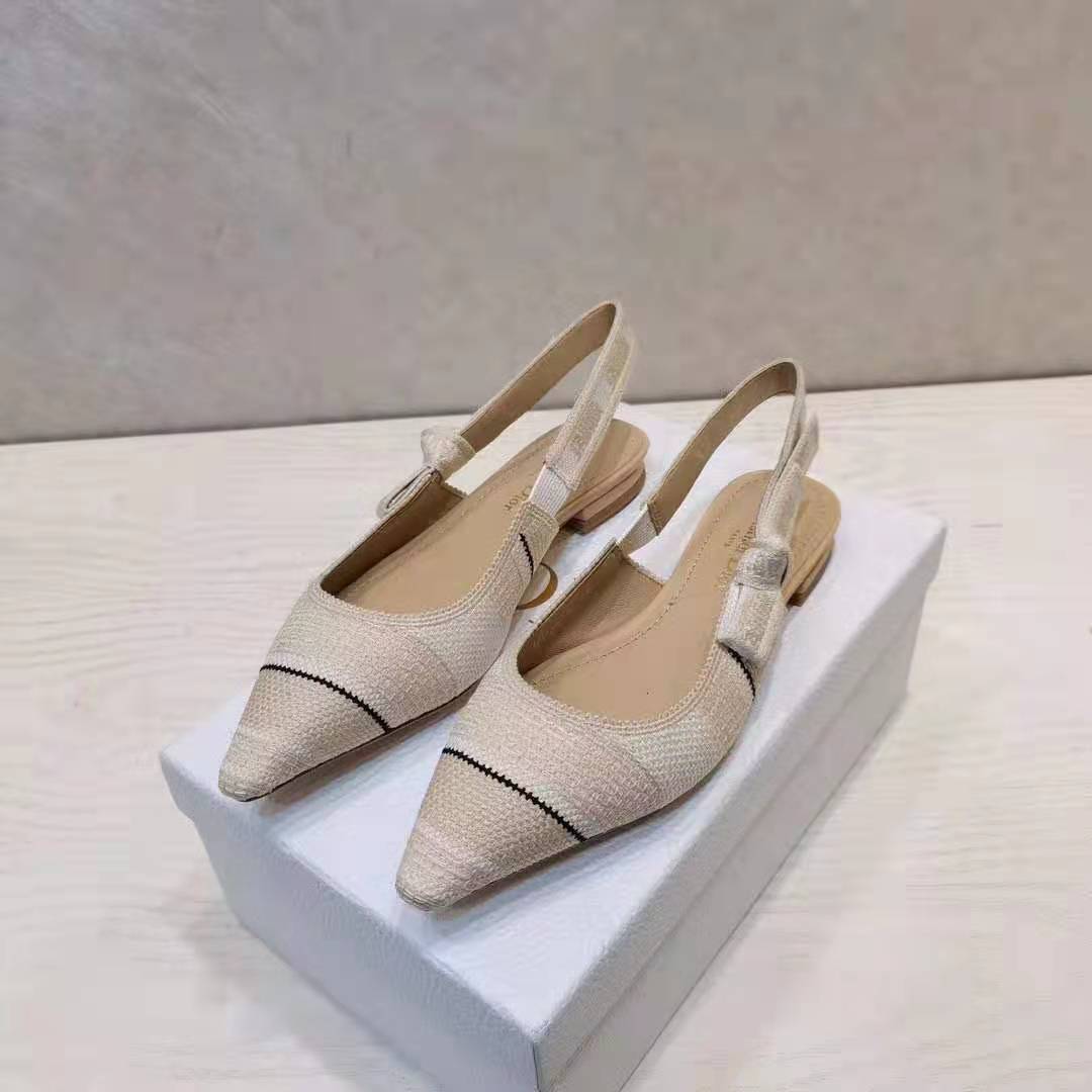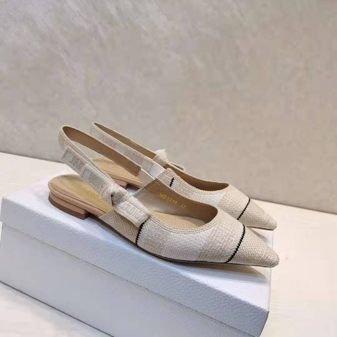 The J’Adior slingback ballerina flat portrays a graceful silhouette with emblematic details.