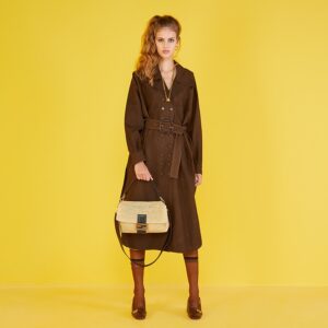Large, iconic Baguette bag with flap and magnetic clasp.