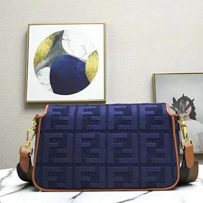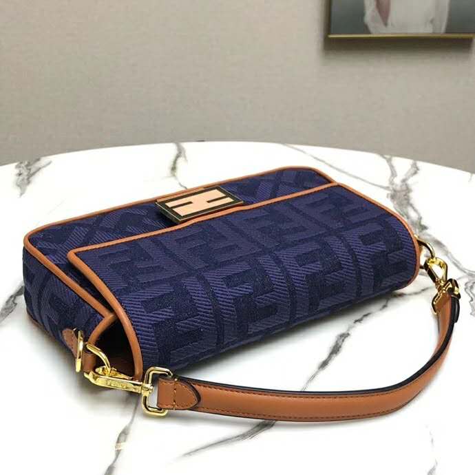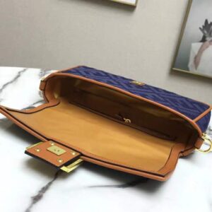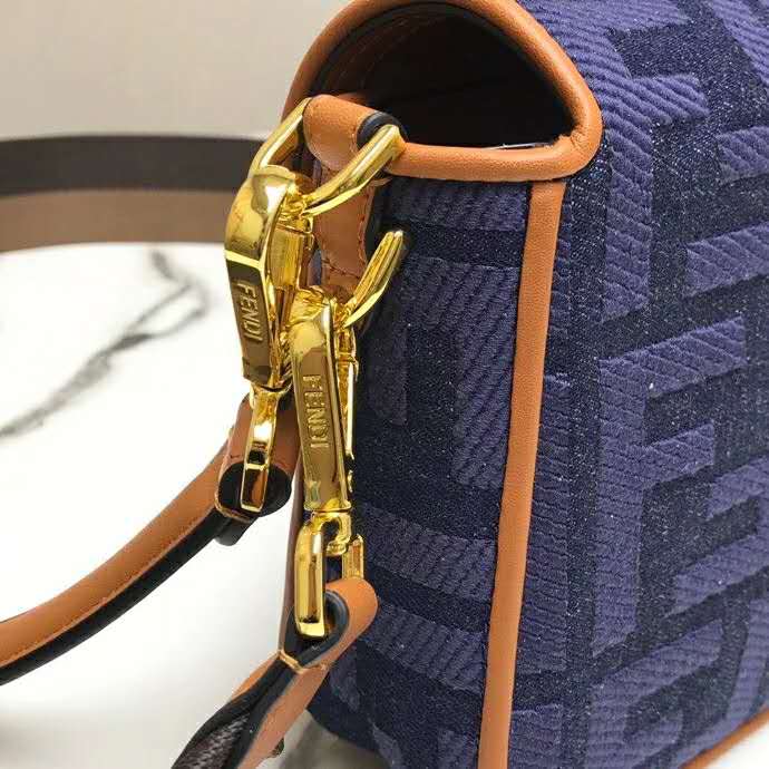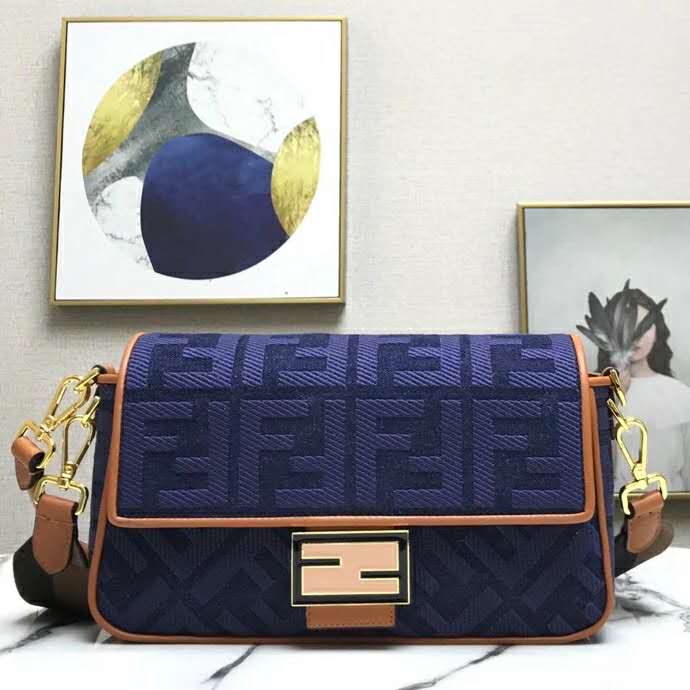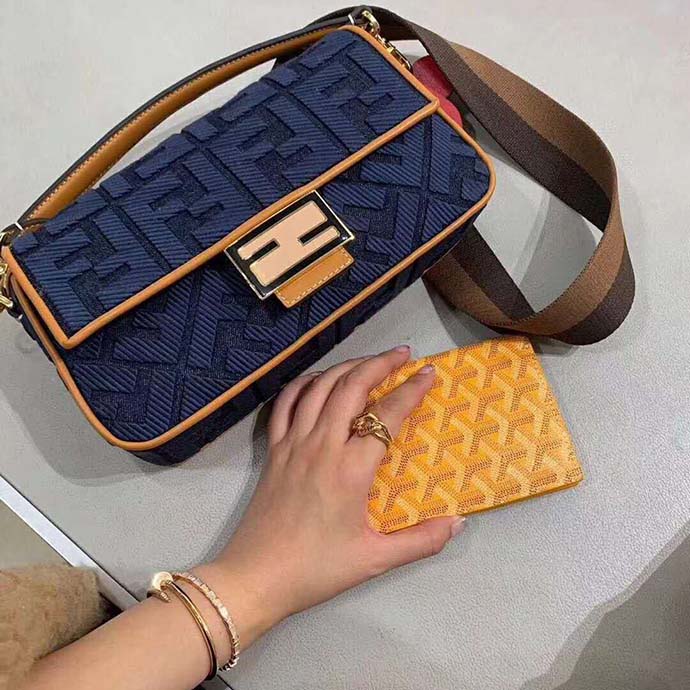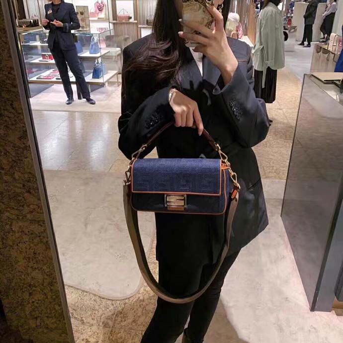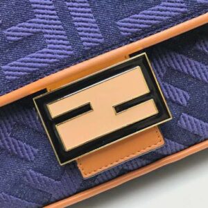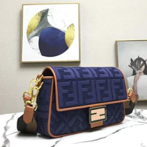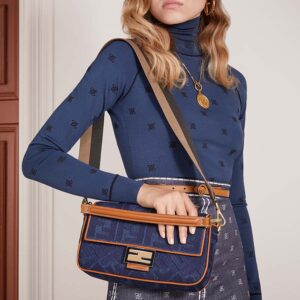 Fendi Women Medium Iconic Baguette Blue Denim Embroidered FF Bag