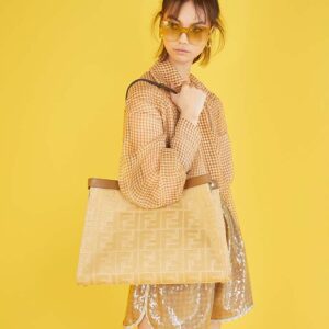 Tone-on-tone embossed and embroidered decorative FF motif.