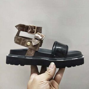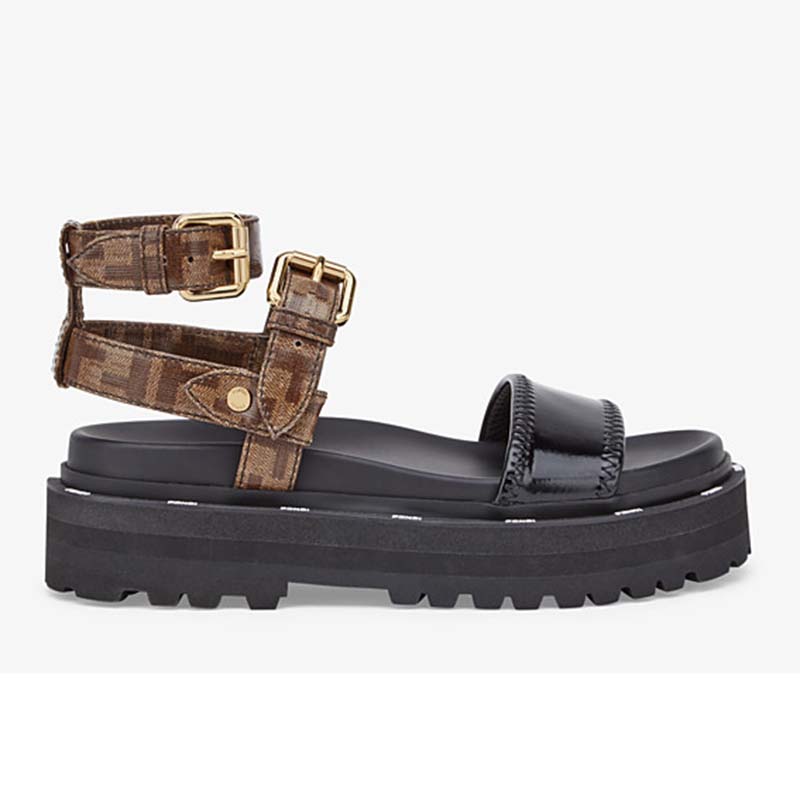 Sandals in glossy black neoprene