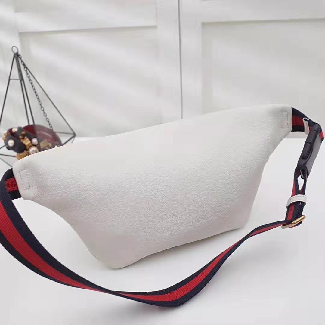 The retro-style motif is presented on the front of a belt bag in supple, textured leather.