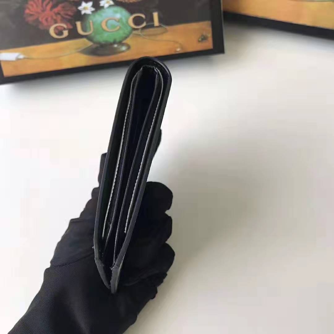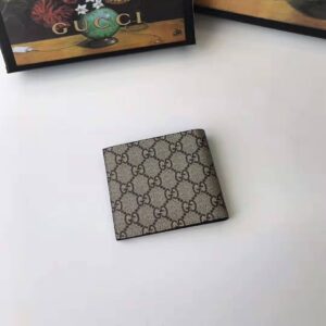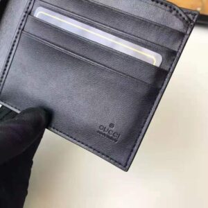 Here, it is printed at the center of a bi-fold wallet made in GG Supreme canvas, a material with low environmental impact.