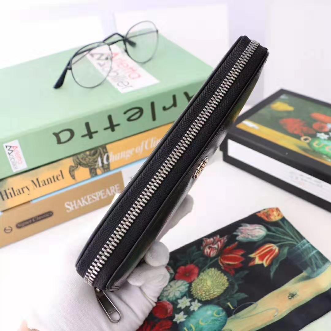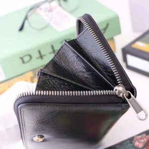 Recalling retro designs from the 1970s, this zip around wallet is crafted from soft, black leather treated for a vintage effect.