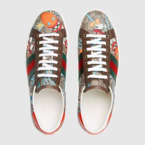 Donald Duck’s nephews Huey, Dewey and Louie, are reworked in colorful print decorating this pair of Ace sneakers.
