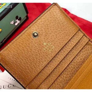 Mickey Mouse’s playful image defines this GG wallet, trimmed with light brown leather details that convey a vintage look and feel.
