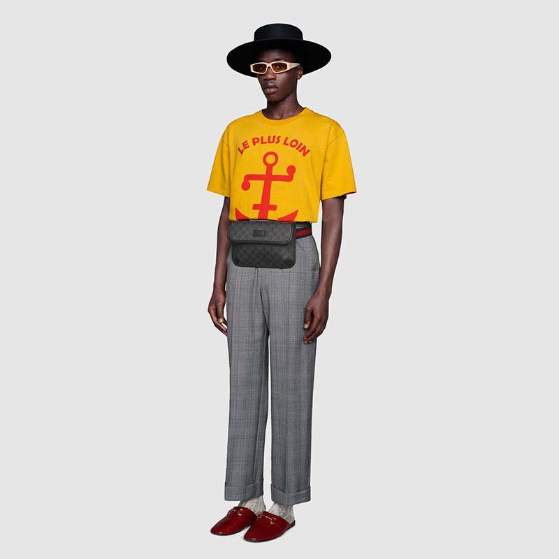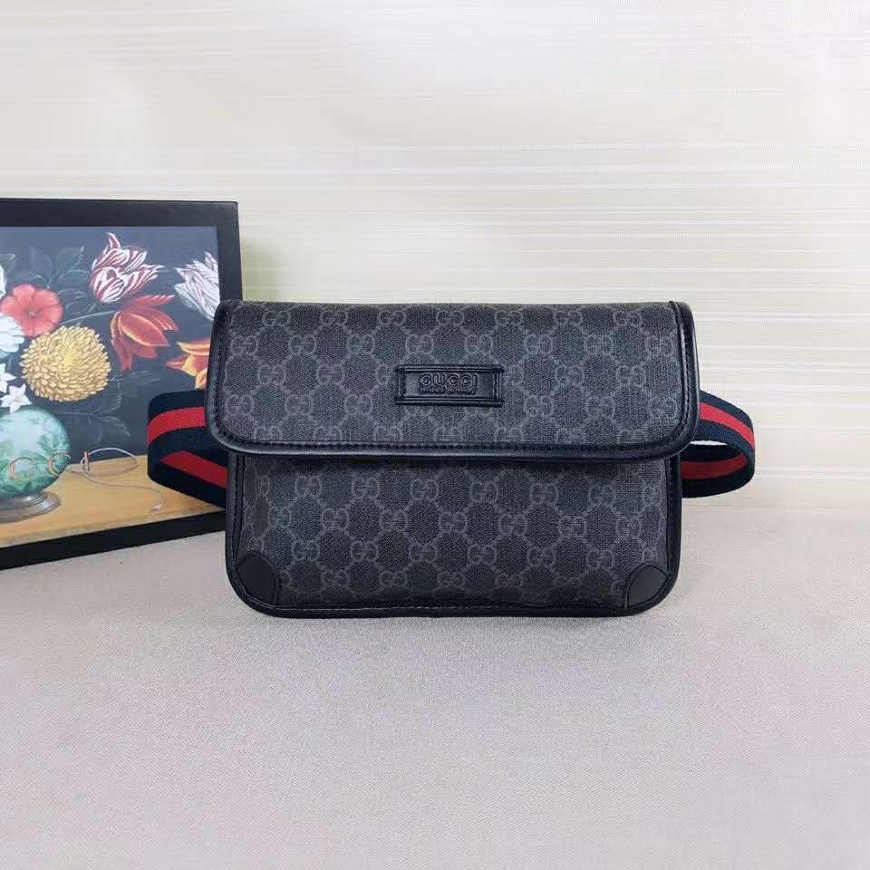 Presented in a black and grey combination, the GG motif takes on a contemporary look in a slim belt bag.