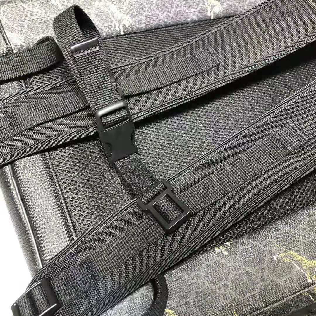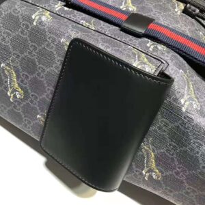 Leaping tigers are scattered across a GG Supreme base, contrasting against the black and grey combination of the emblematic House pattern.