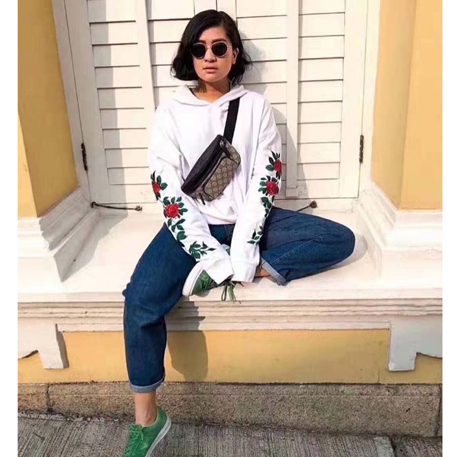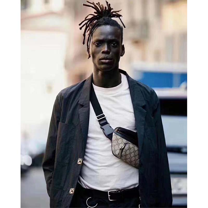 GG Supreme canvas belt bag, finished with black leather details and rubberized hardware.