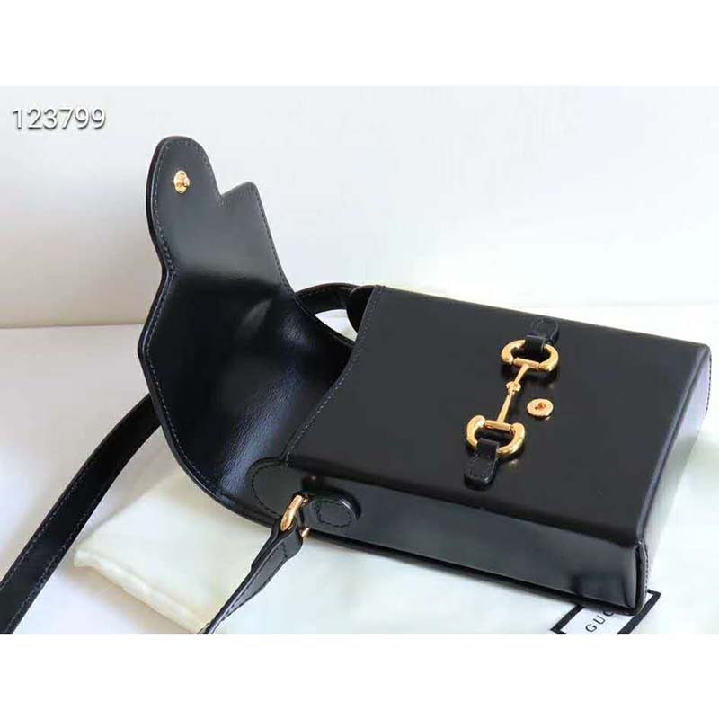 Presented in a petite rectangular shape, the Gucci Horsebit 1955 mini bag is introduced for Pre-Fall 2019 in black leather.
