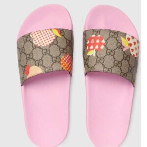 Gucci GG Unisex Gucci Les Pommes Slide Sandal Beige and Ebony GG Supreme Canvas
