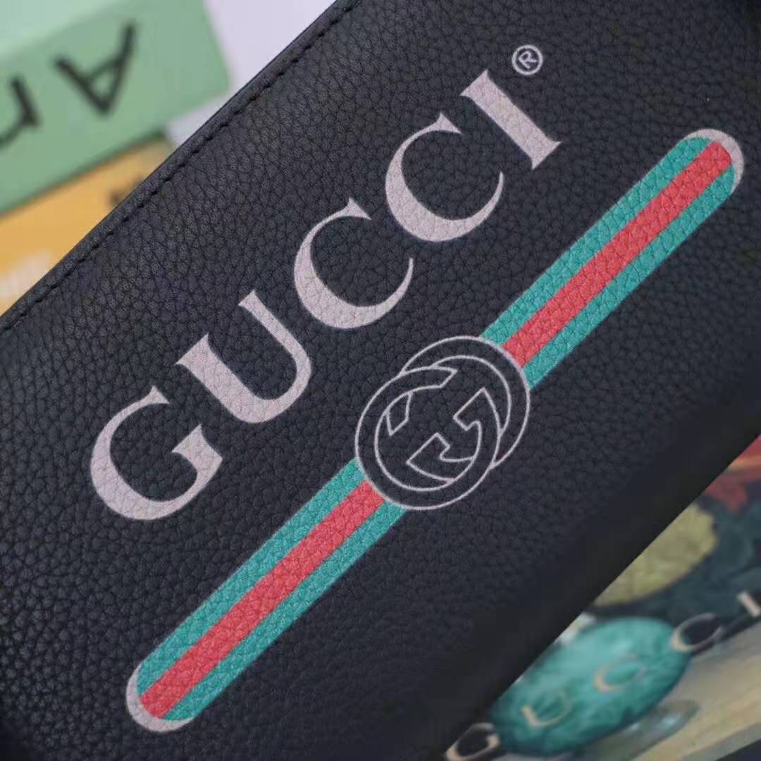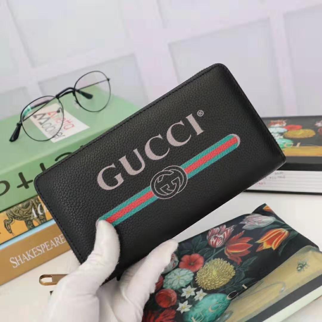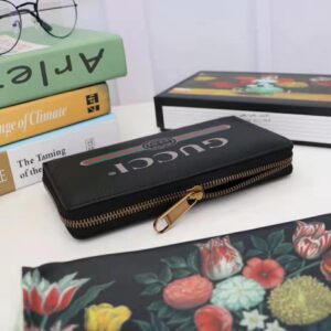Gucci GG Unisex Gucci Print Leather Zip Around Wallet with Gucci Vintage Logo