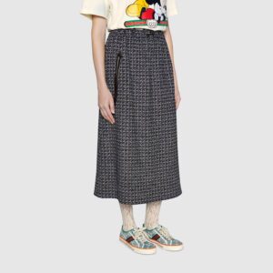 The style combines different elements from the House’s heritage such as the Gucci Tennis 1977 label, a textured GG motif at the sole and the House Web—details which recall the House’s connection to the world of sports and leisure.