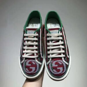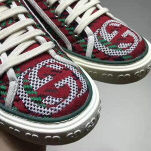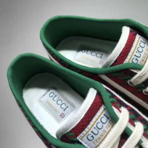 The style combines different elements from the House’s heritage such as the Gucci Tennis 1977 label, a textured GG motif at the sole and the House Web—details which recall the House’s connection to the world of sports and leisure.