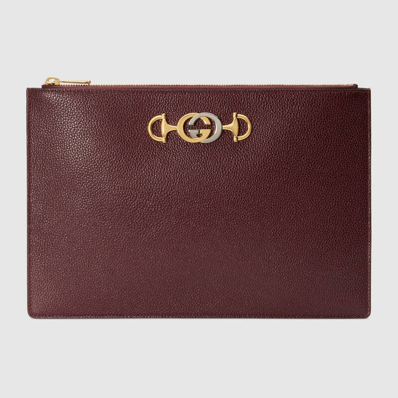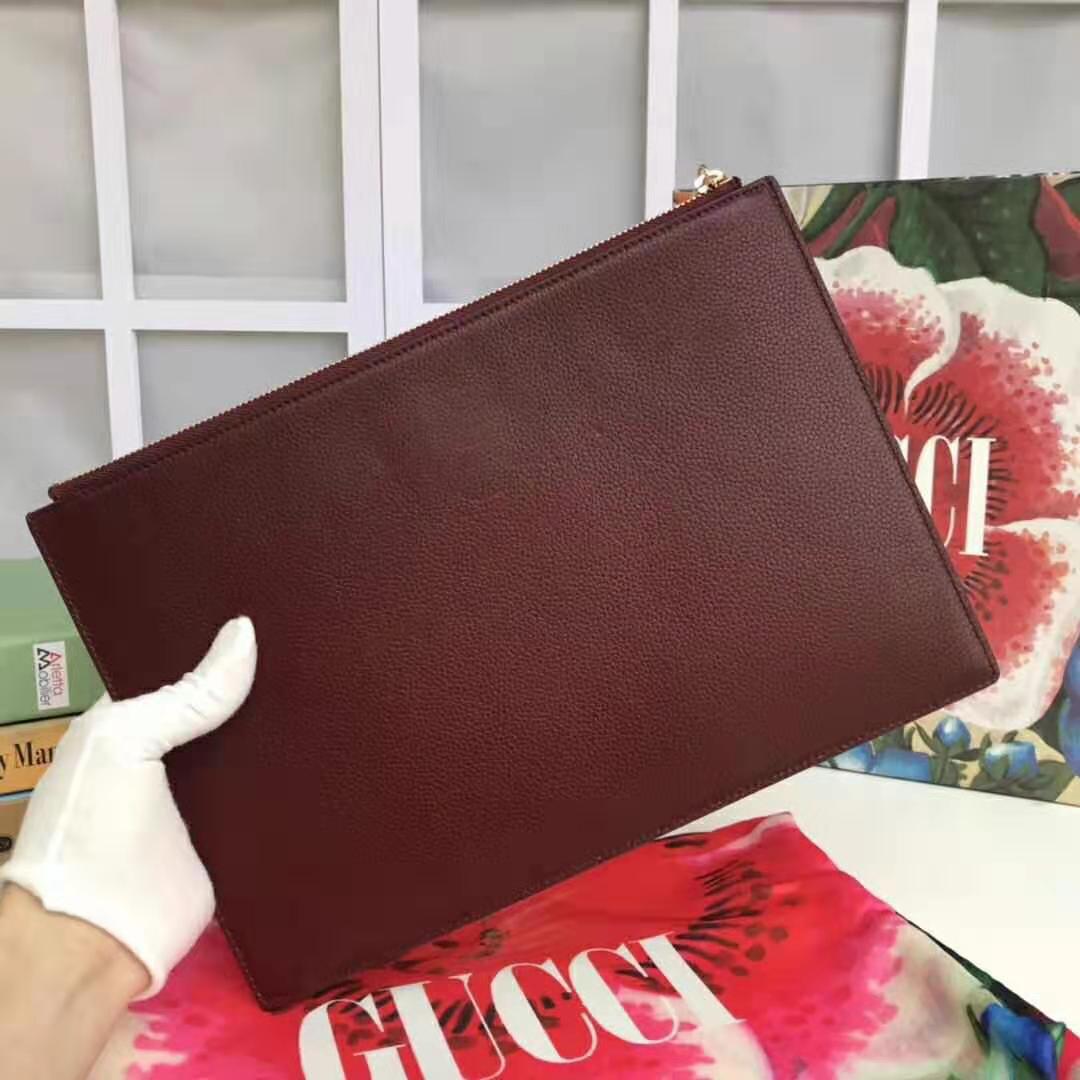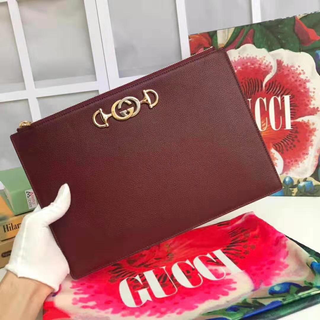 Gucci GG Unisex Gucci Zumi Grainy Leather Pouch Maroon