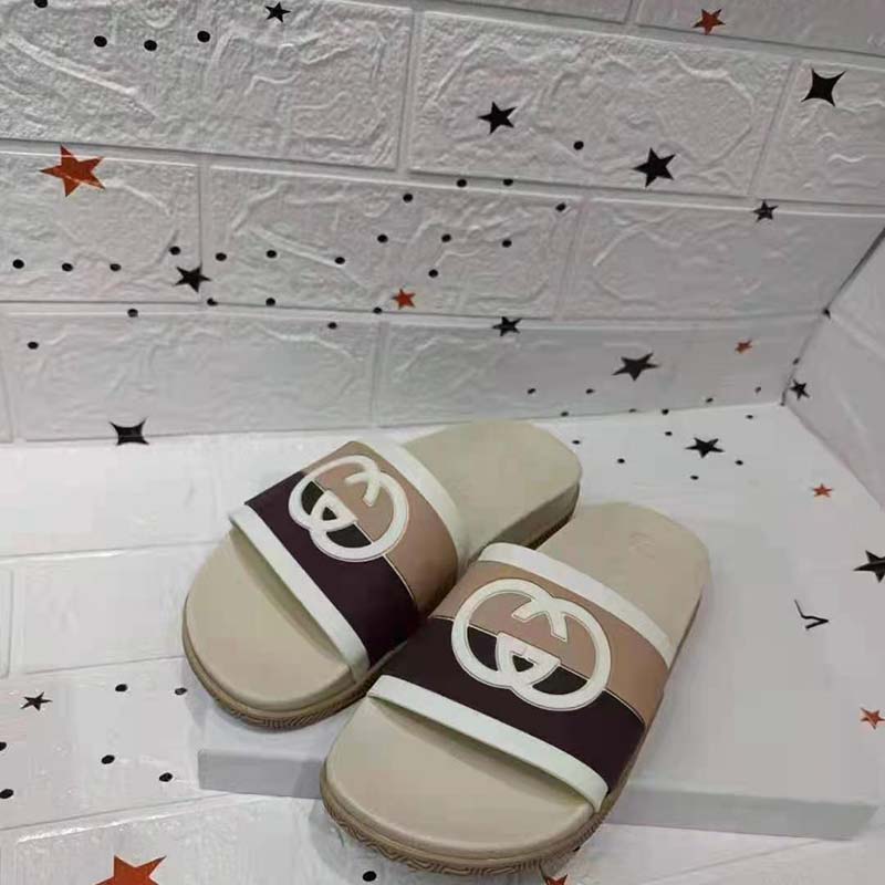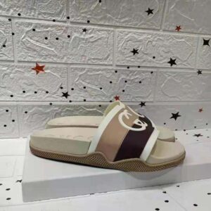 Gucci GG Unisex Interlocking G Slide Sandal Beige Ebony Interlocking G Striped Rubber