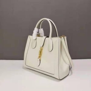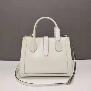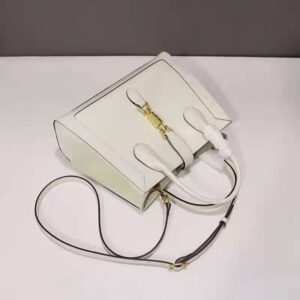 Presented in precious whte leather, the medium sized style is defined by the emblematic piston closure.