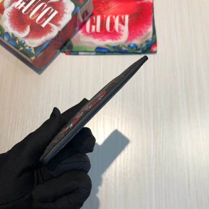 Gucci GG Unisex Kingsnake Print GG Supreme Card Case-Black