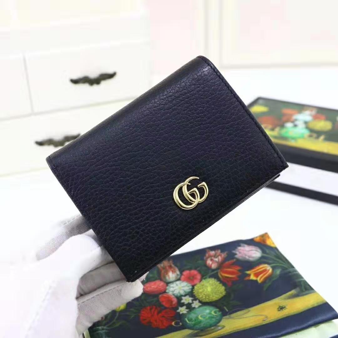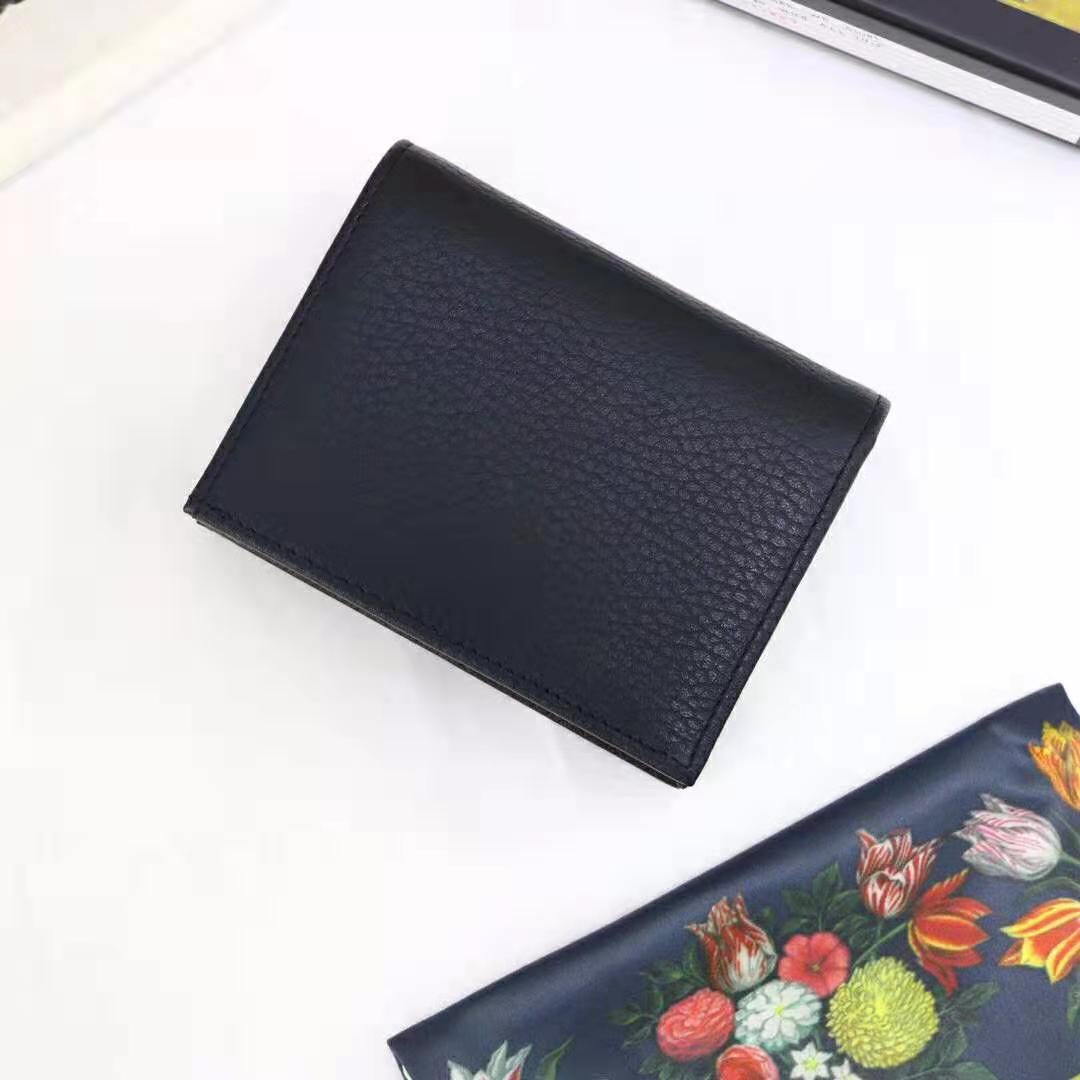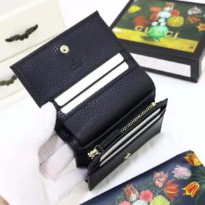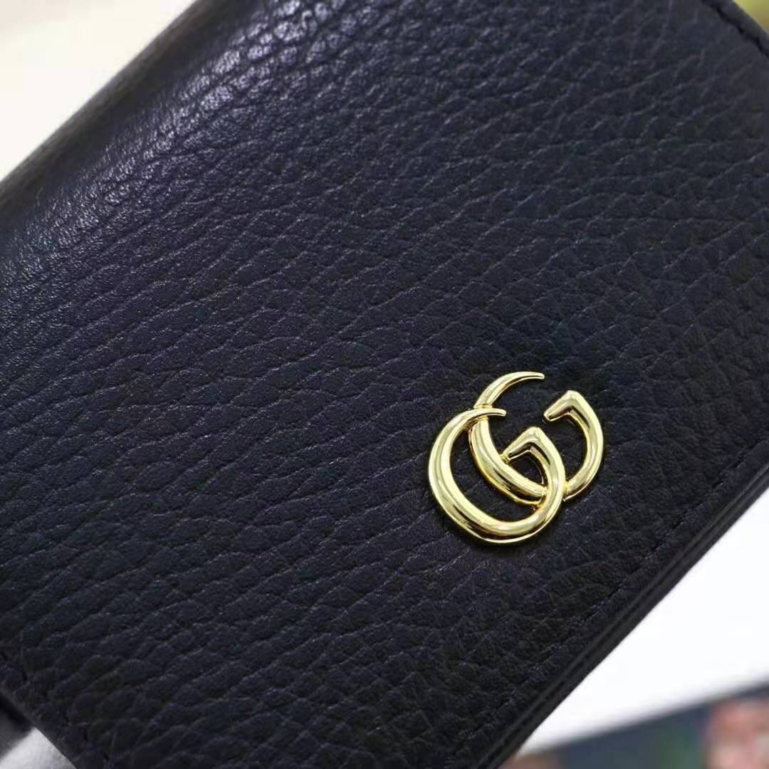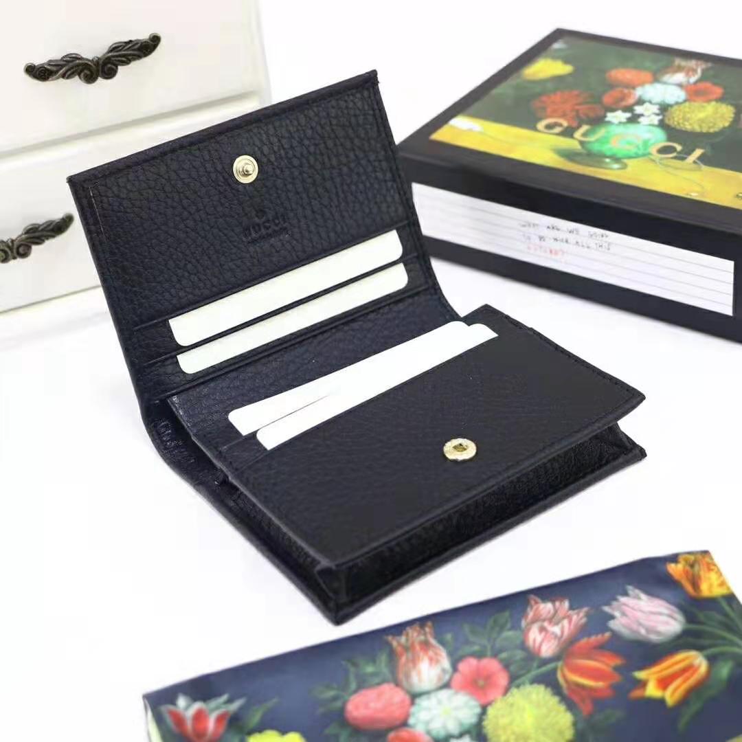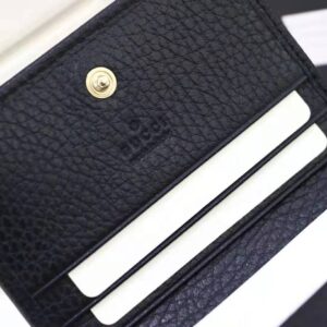 Gucci GG Unisex Leather Card Case Wallet in Textured Leather with Double G Black