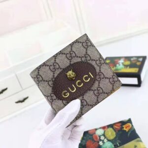 A collection of vintage inspired leather accessories in GG Supreme feature an oval leather tag with metal feline head, a now-established code of the House influenced by Alessandro Michele’s eccentric sensibility.