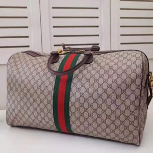 The world of Ophidia evolves with the introduction of a duffle shape crafted in soft GG Supreme canvas with inlaid green and red Web stripe.