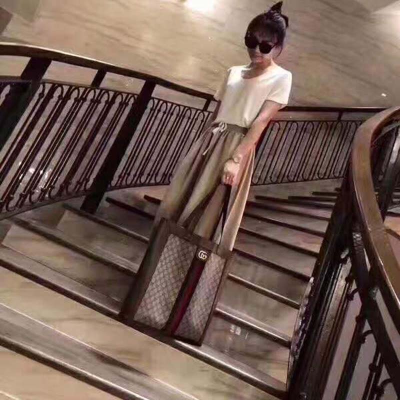 This large tote combines the signature motif with the Web stripe—a timeless pairing that pays homage to Gucci’s roots.
