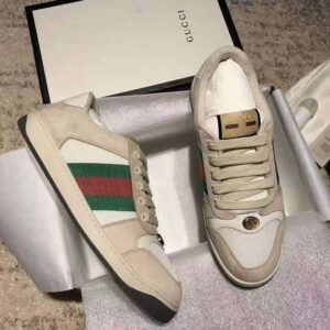 Gucci GG Unisex Screener Leather Sneaker Off-White Leather White Nylon