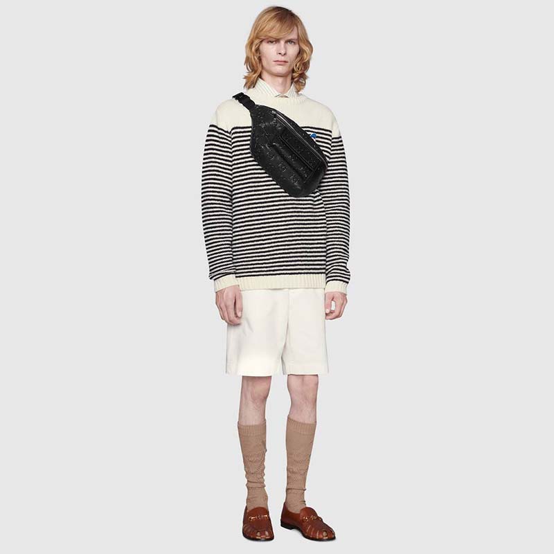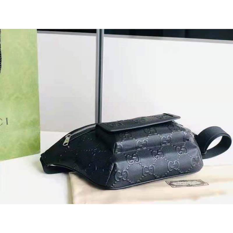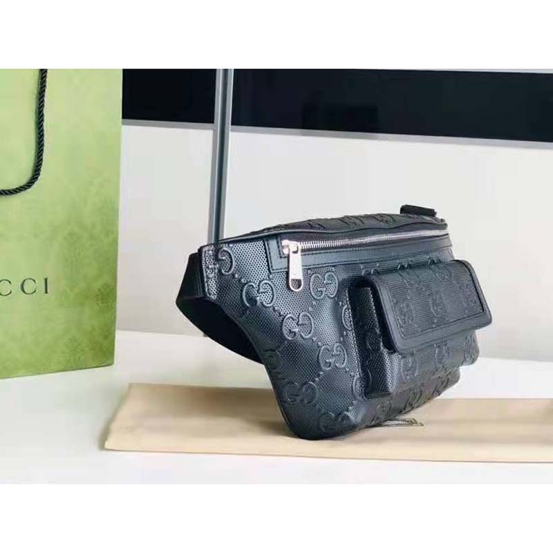 Gucci GG Unisex White Embossed Belt Bag Tonal Leather