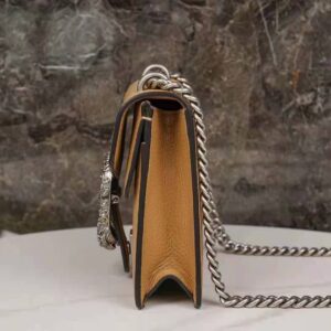 One of the House’s Beloved lines, the bag is synonymous with its textured tiger head closure. Here, it appears as a mini bag presented in brown leather and accentuated with sparkling crystals at the closure.
