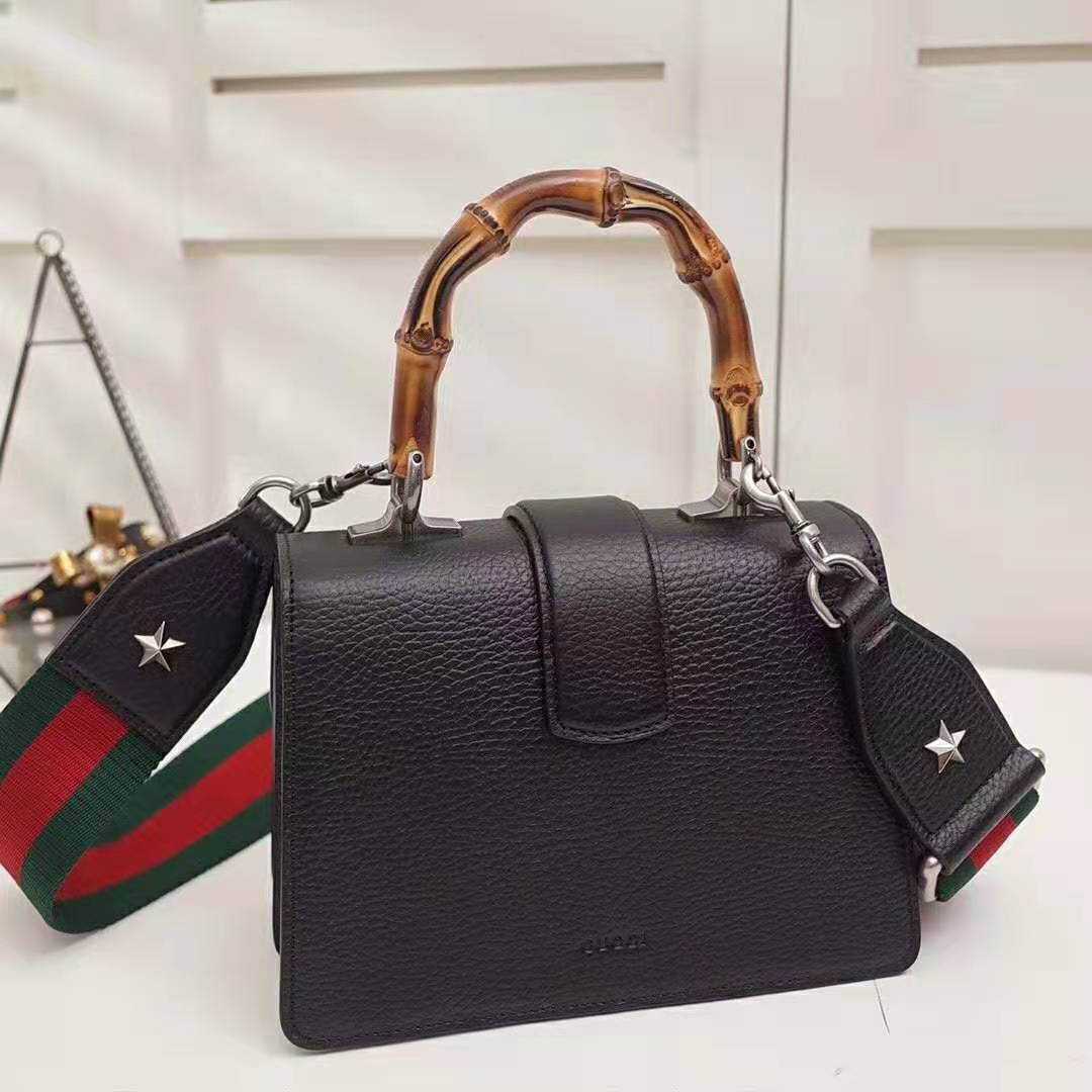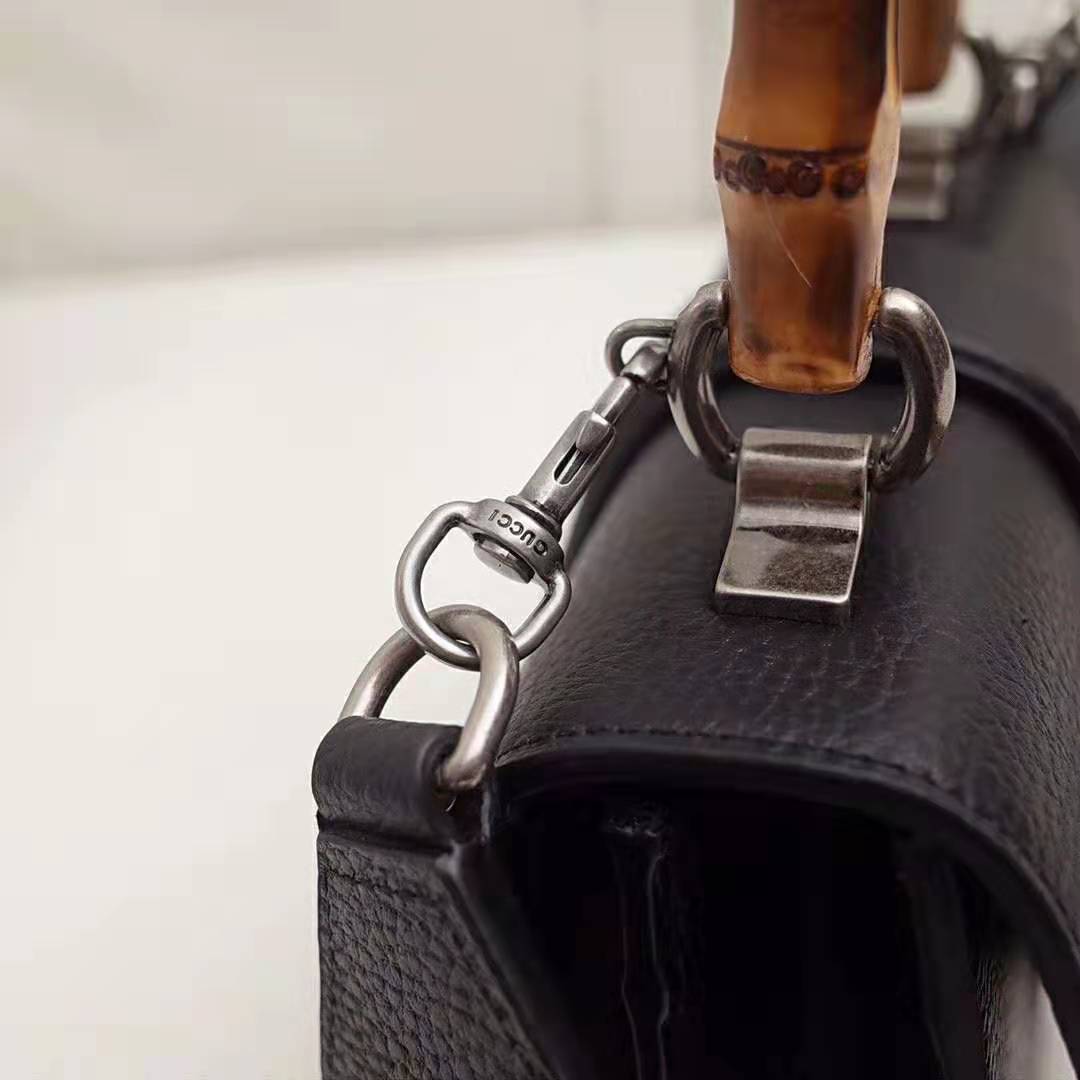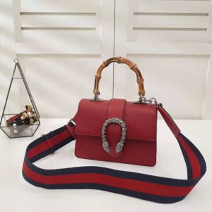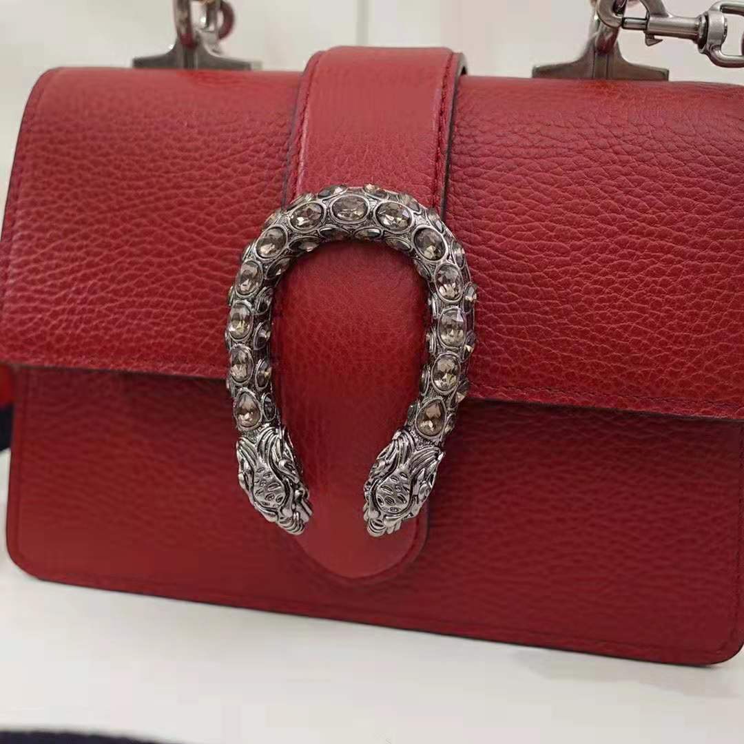 Presented in a new, mini size for Pre-Fall 2018, this Dionysus bag in textured black leather is defined by the tiger head spur closure-a unique detail referencing the Greek god Dionysus, who in myth is said to have crossed the river Tigris on a tiger sent to him by Zeus.
