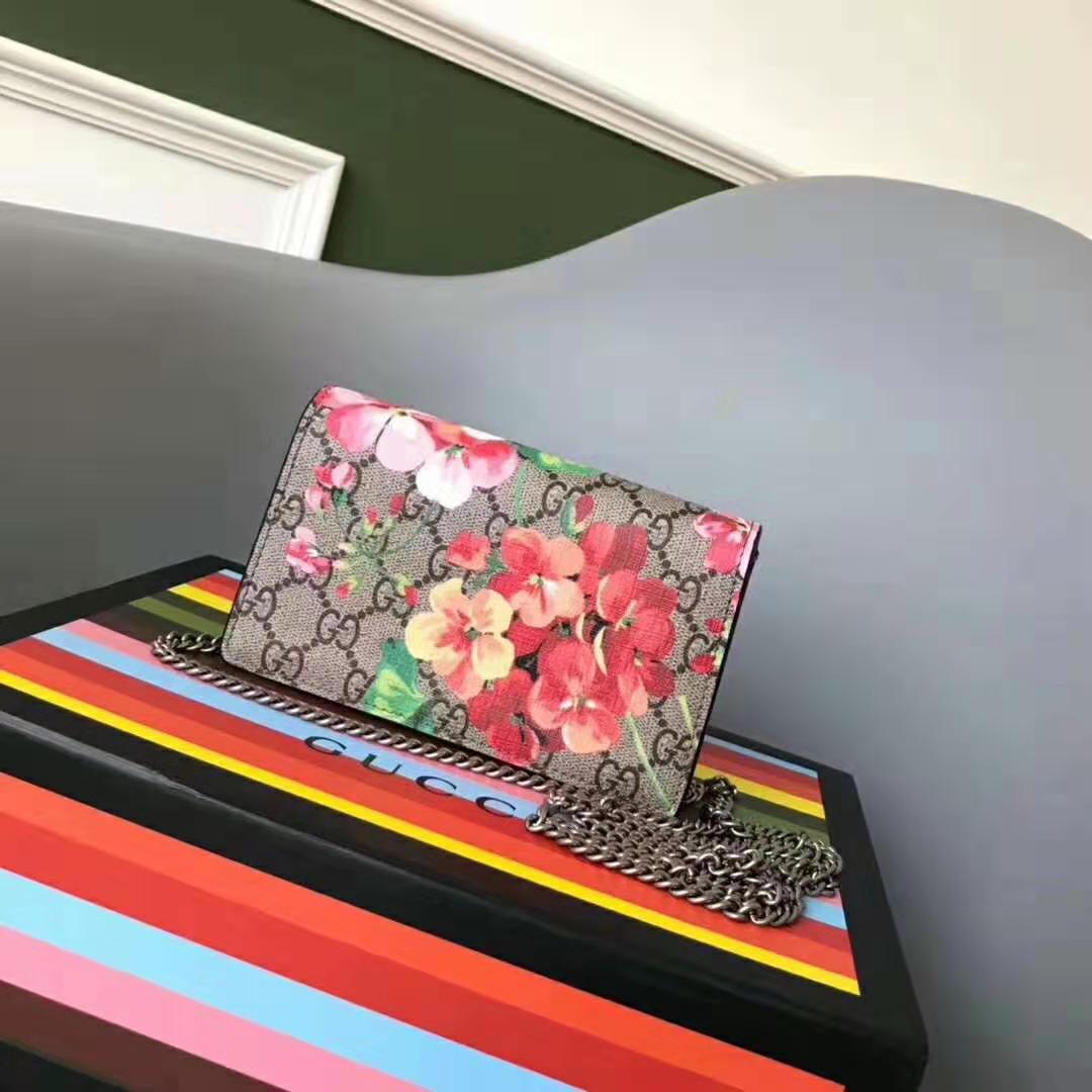 A structured Blooms GG Supreme canvas chain super mini bag with a key ring that can be used to attach this bag to a separate larger bag.