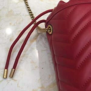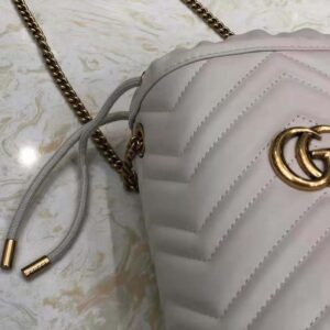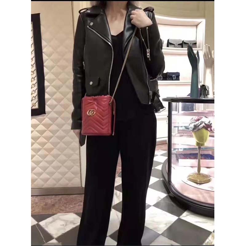 The GG Marmont collection is defined by the emblematic Double G hardware—a contemporary take on a Gucci archival belt buckle from the ’70s that has become a hallmark of the House. Completed by a gold-toned chain strap, the dynamic shape can be worn in multiple ways.