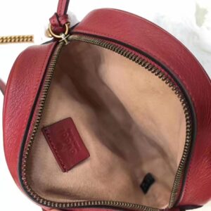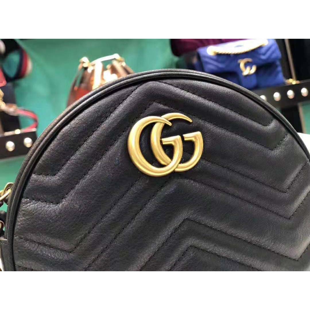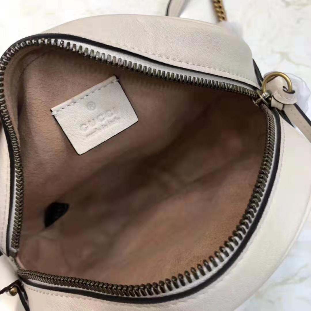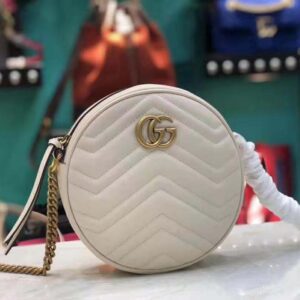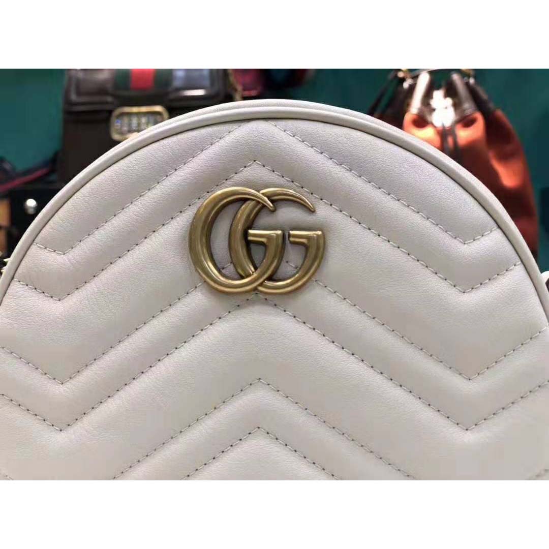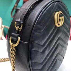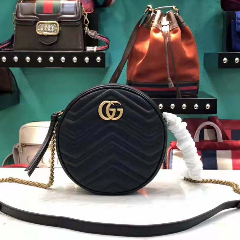 A new introduction to the GG Marmont line for Cruise 2019, the mini bag is presented in a rounded shape with a chain shoulder strap.