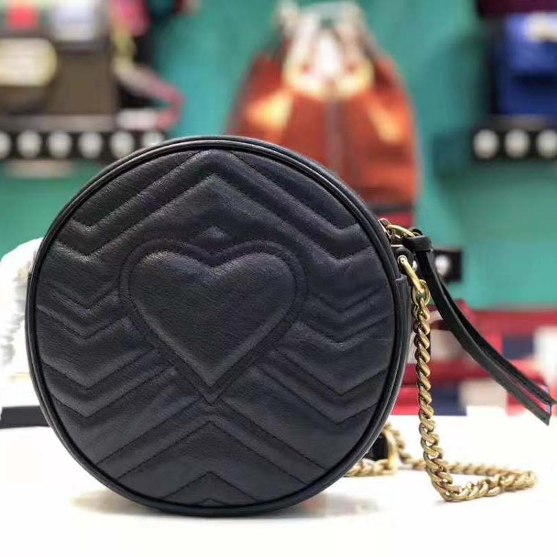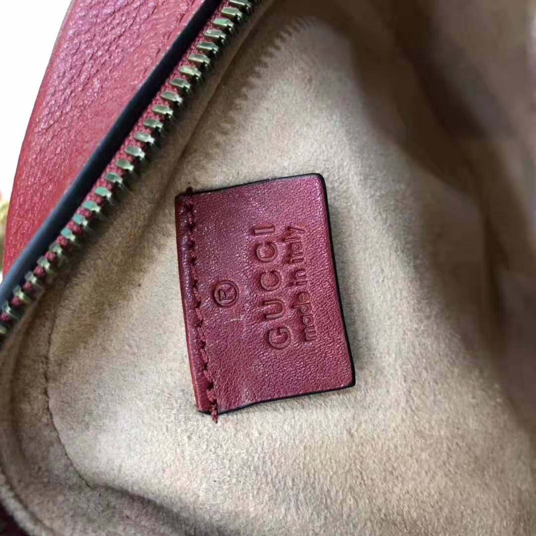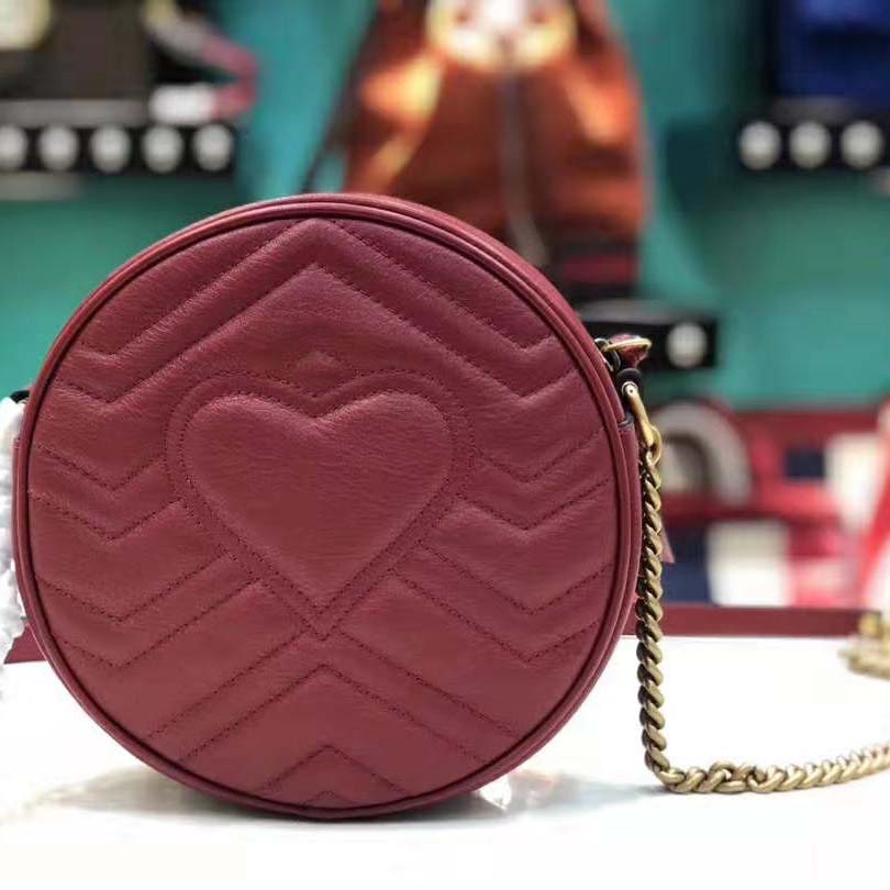 Defined by the distinctive Double G hardware, made in matelassé chevron leather with a heart on the back, finished with a vintage effect.