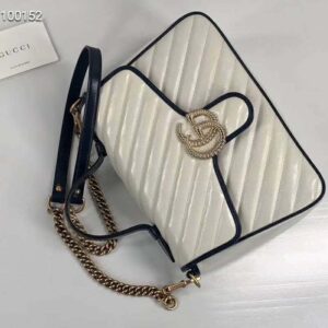 The GG Marmont bag is reintroduced in white diagonal matelassé quilted leather and completed with a twisted torchon Double G embellishment.