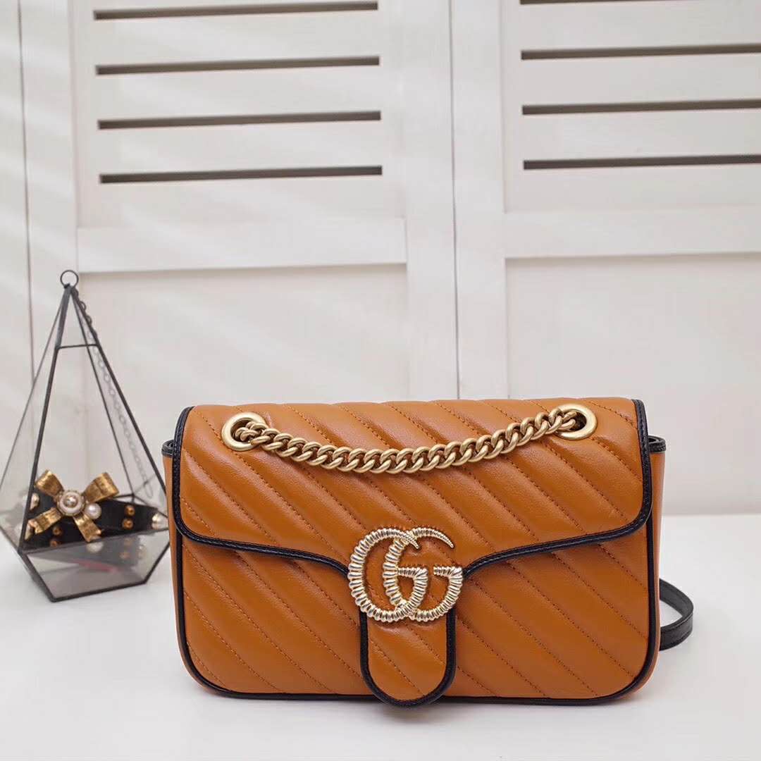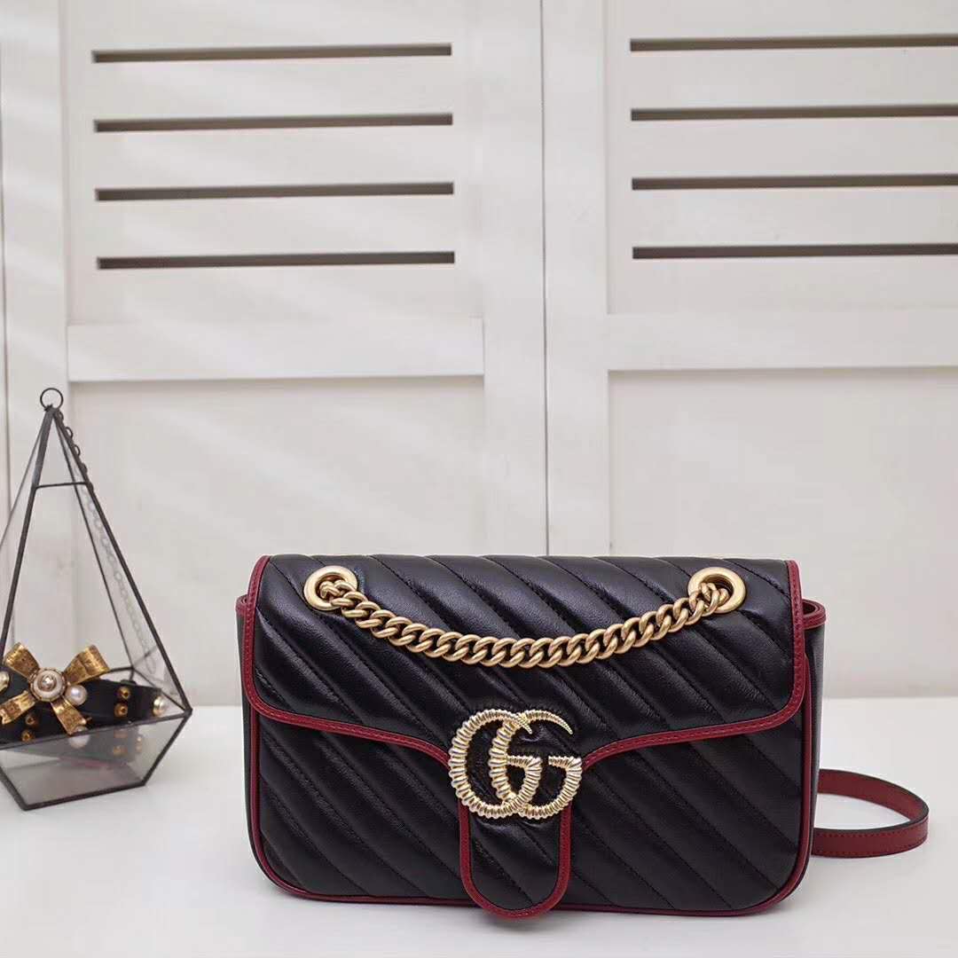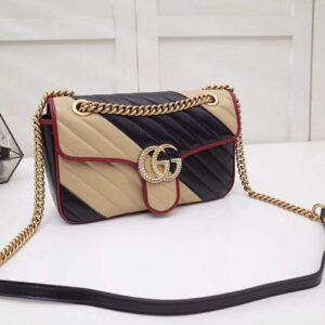 Gucci GG Women GG Marmont Small Shoulder Bag in Diagonal Matelassé Leather