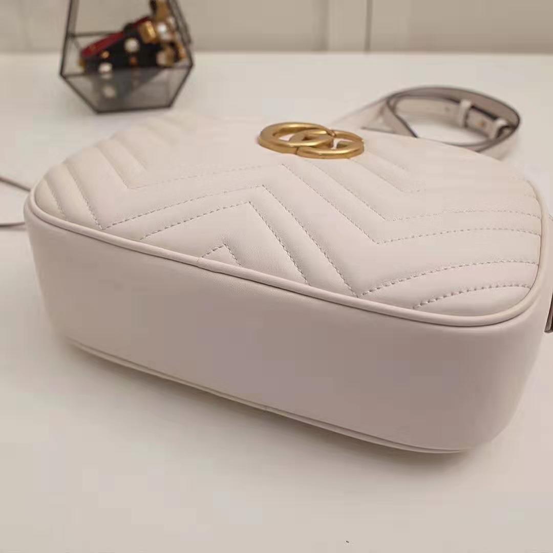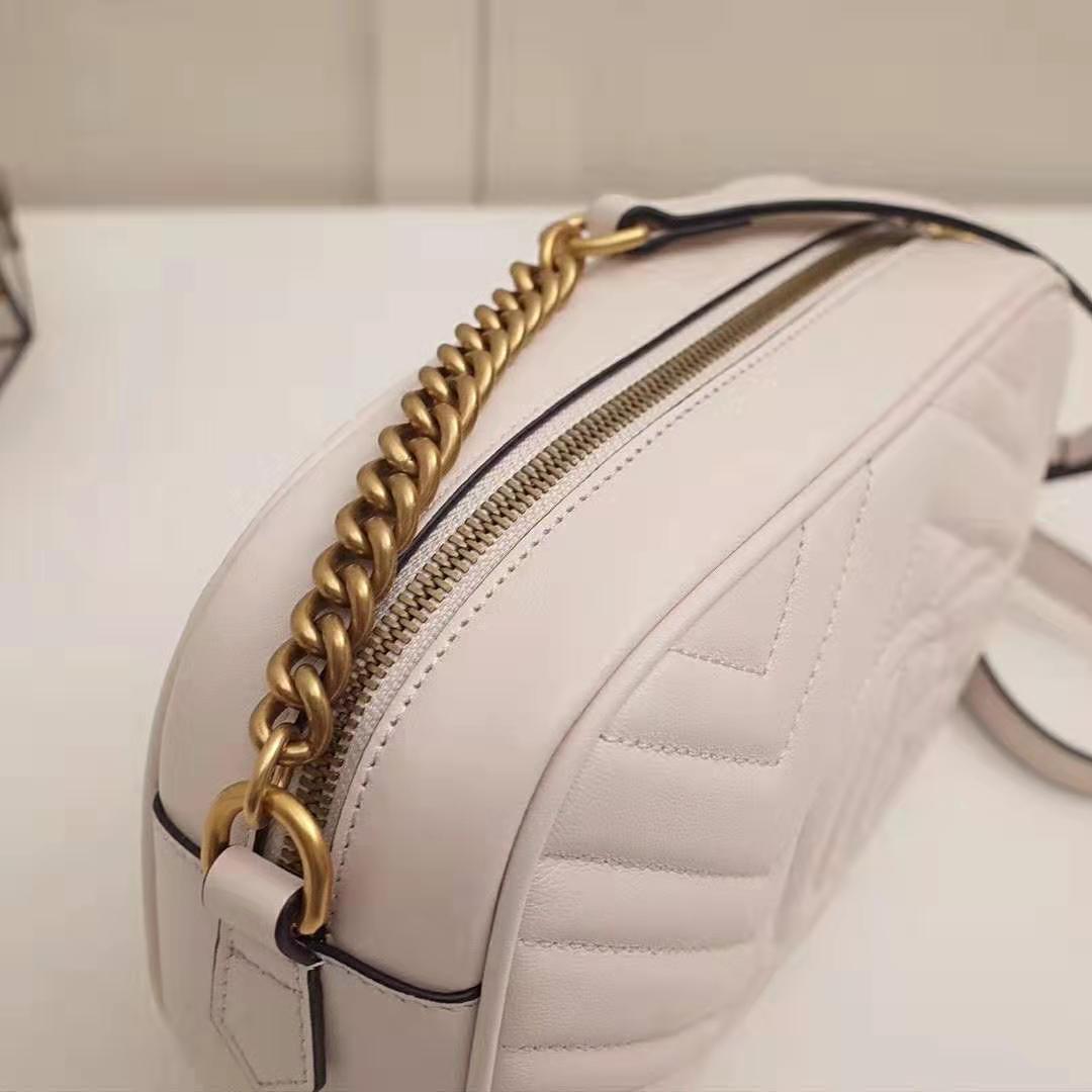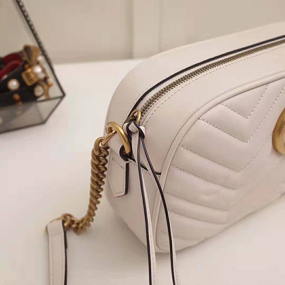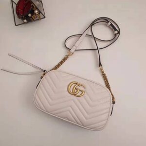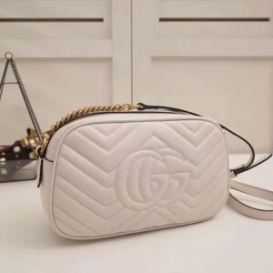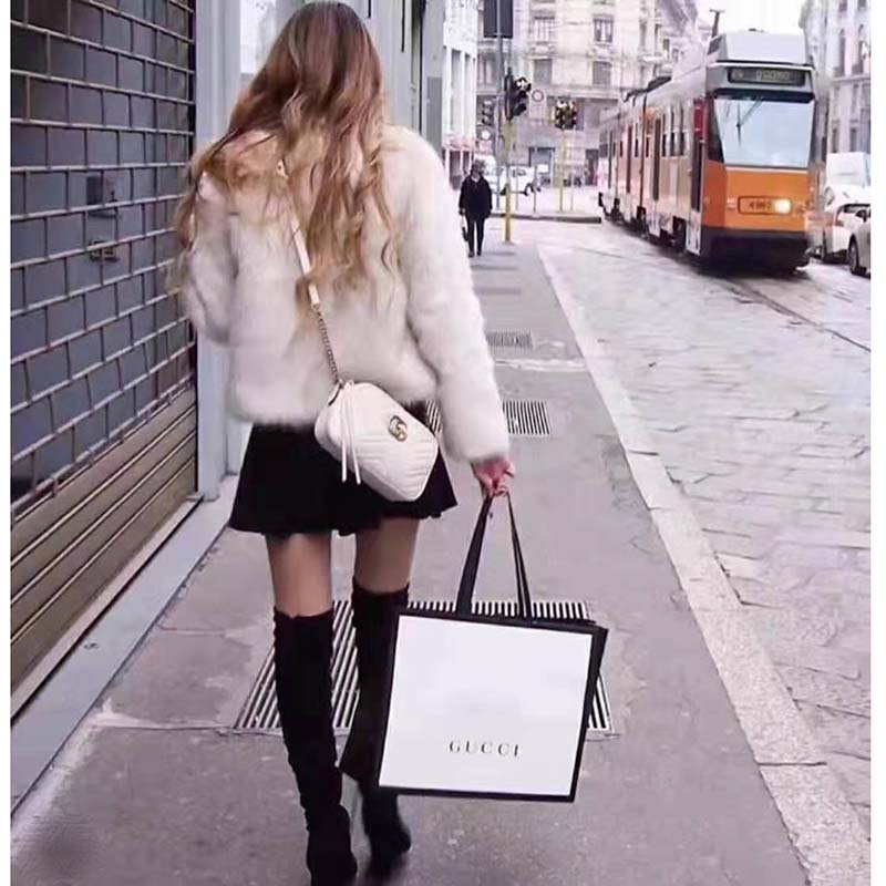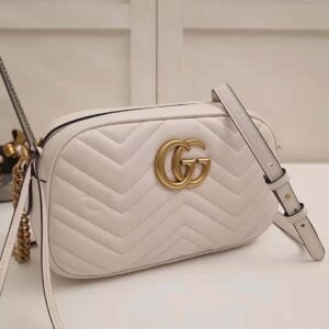 White matelassé chevron leather with GG on the back