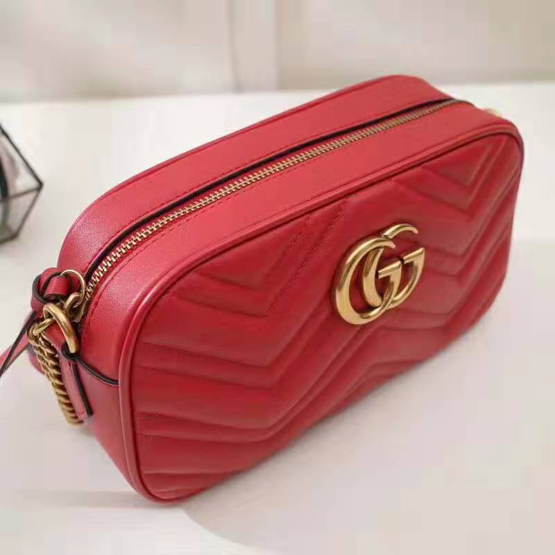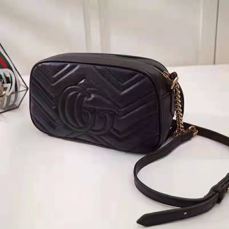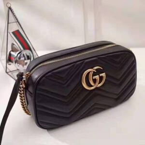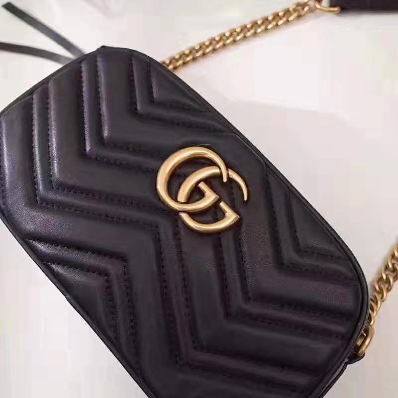 Made in matelassé leather with a chevron design and GG on the back.