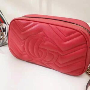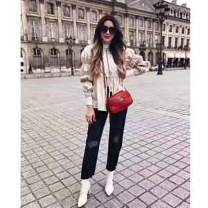 The small GG Marmont chain shoulder bag has a softly structured shape and a zip top closure with the Double G hardware.
