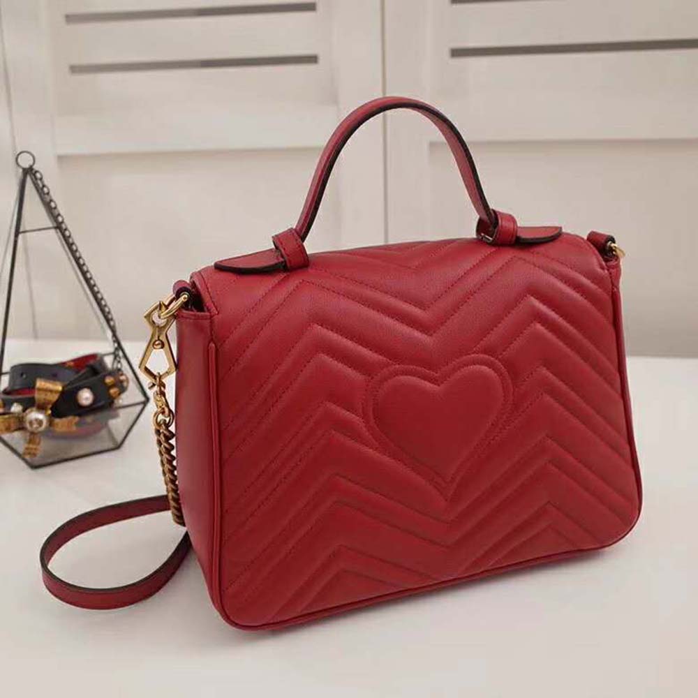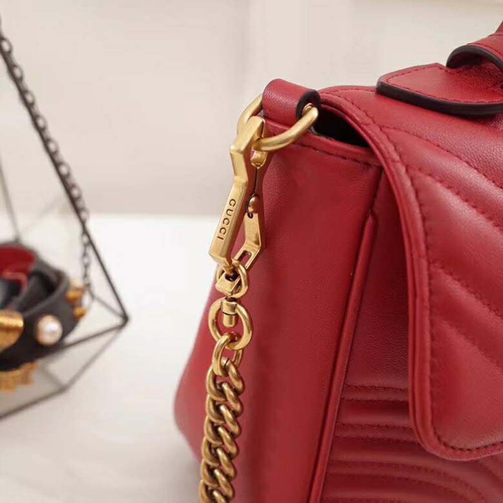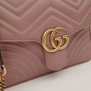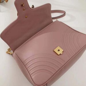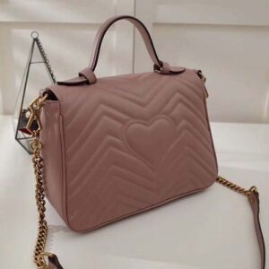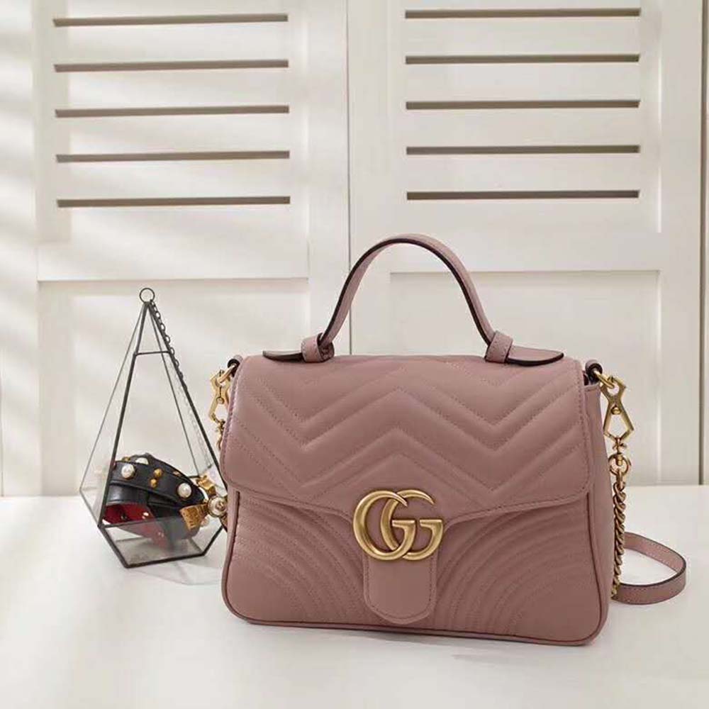 The small GG Marmont top handle bag has a softly structured shape and an oversized flap closure with Double G hardware.