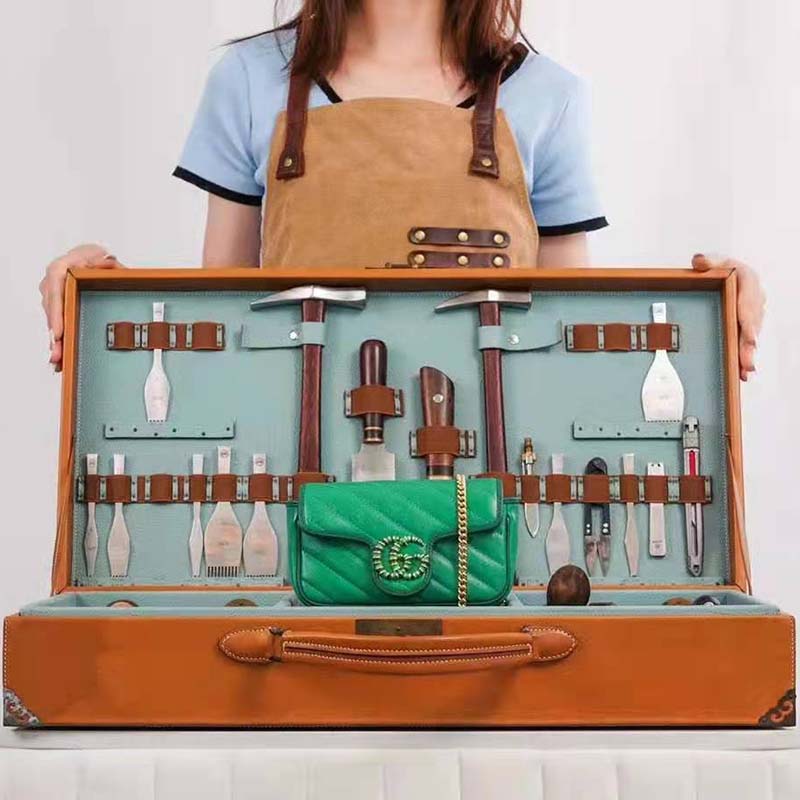 The style is completed with the line’s signature Double G hardware—enriched with enamel. Miniature versions of signature styles appear throughout the Ouverture collection adding a contemporary feel.